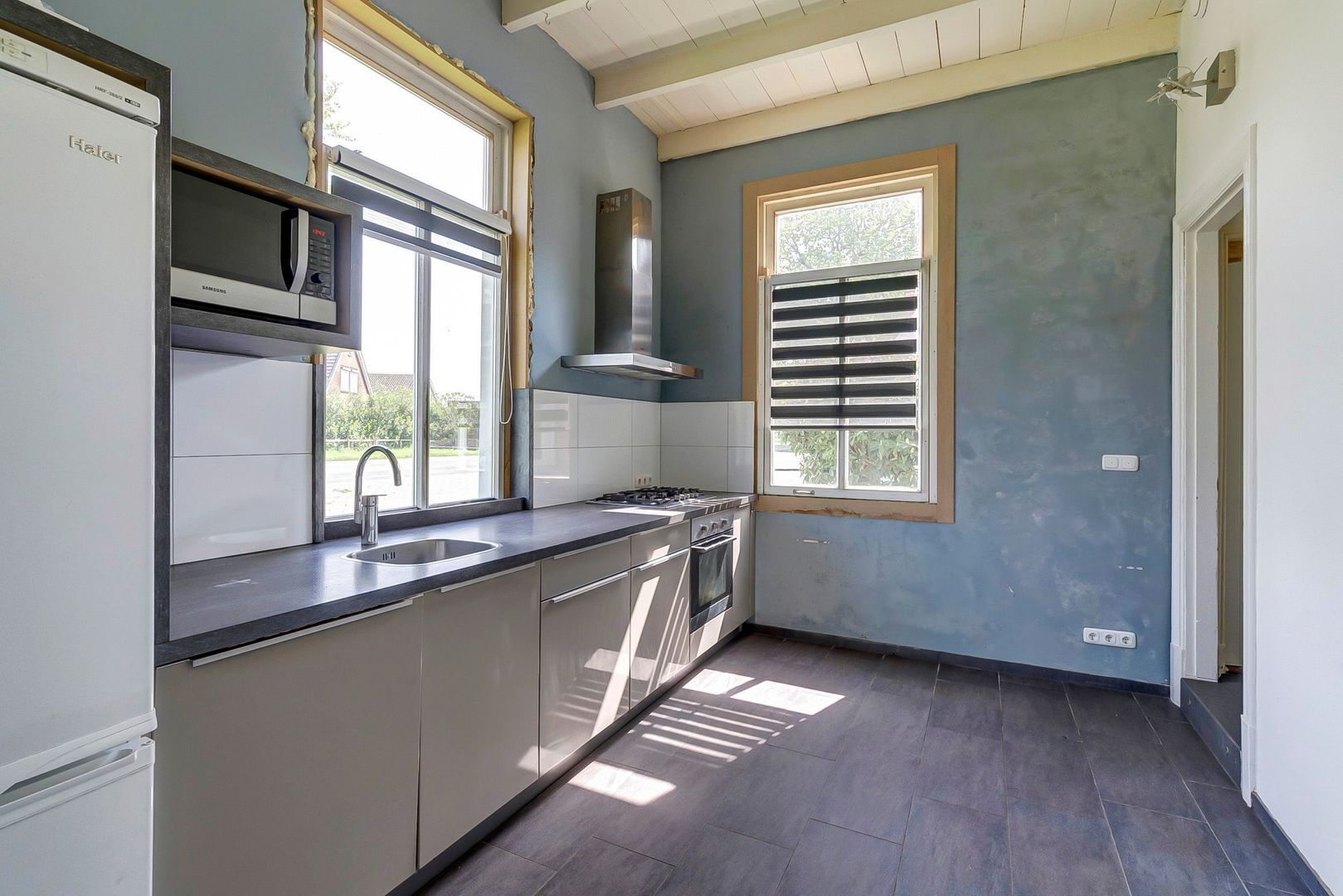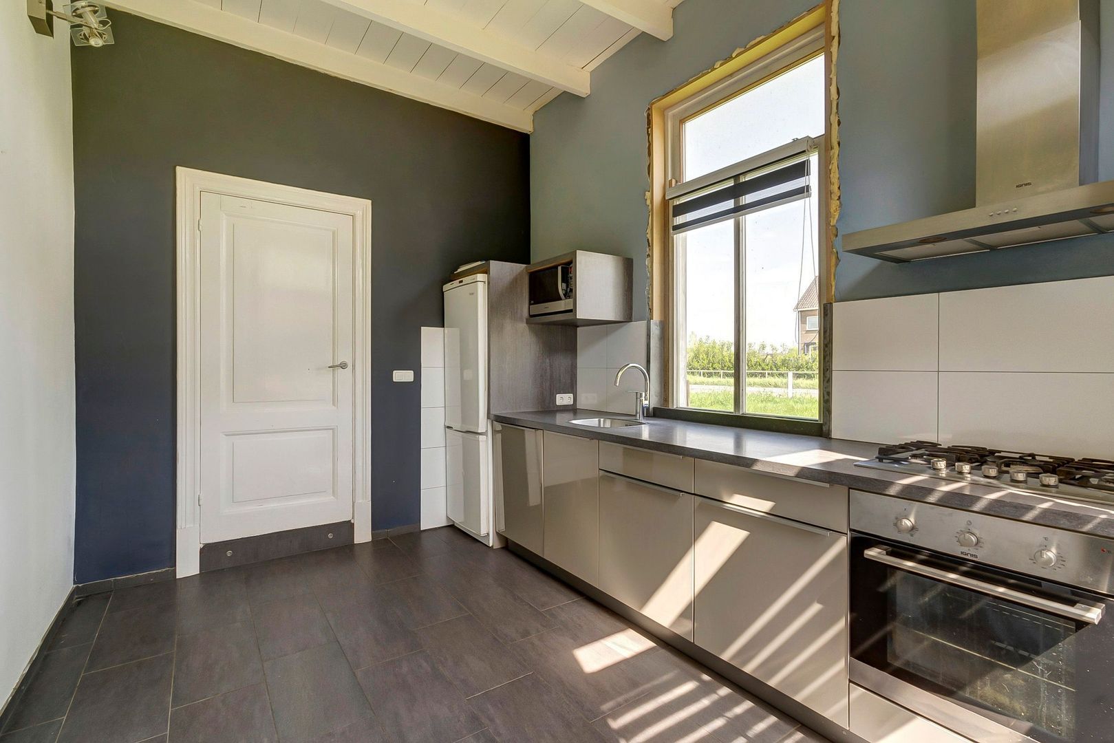 Dichte moderne keuken (2017), voorzien van diverse inbouwapparatuur, met o.a. 5-pits gasstel, oven, afzuigkap en vaatwasser.
