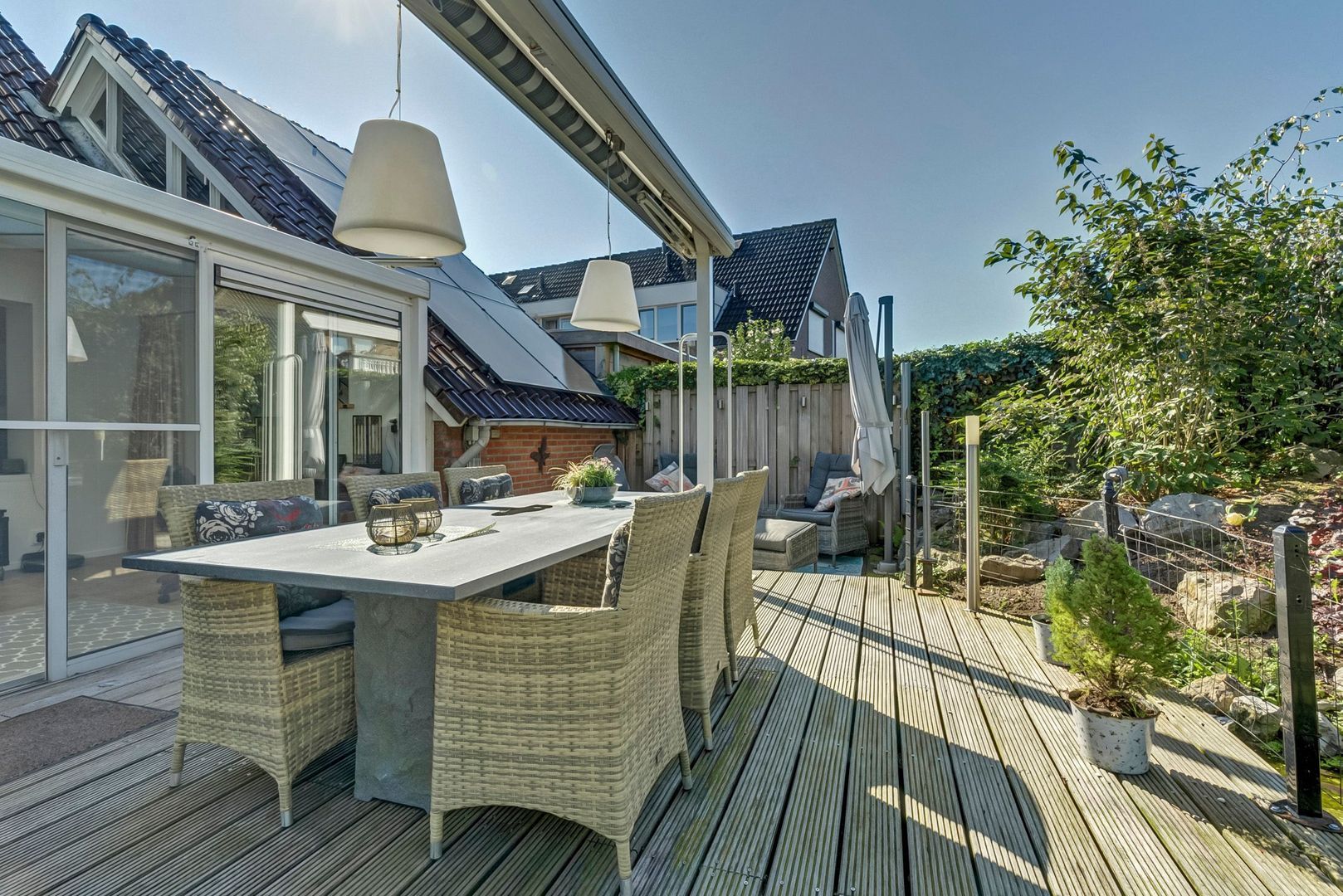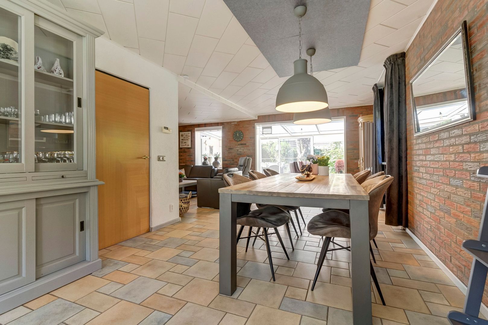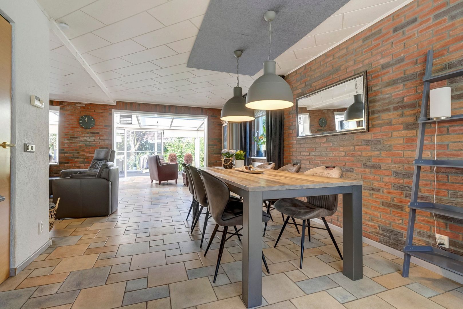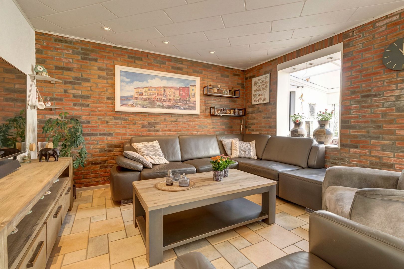 Lichte entree/hal met opgang naar boven, toilet met fontein, meterkast en toegang tot riante, zonnige woonkamer met aangebouwde serre, airco (koelen en verwarmen uit 2024), vloerverwarming en een schuifdeuren naar de tuin waardoor een doorgang van 3 meter ontstaat. Via de woonkamer toegang tot keuken.