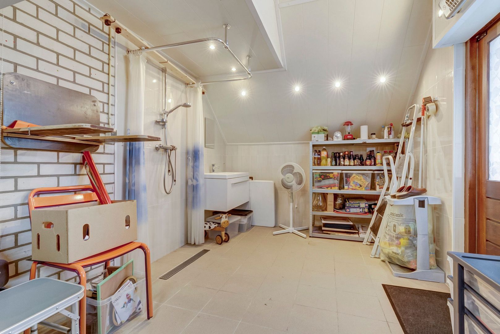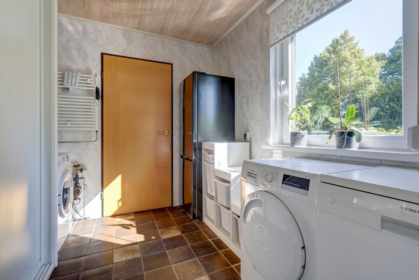 Vanuit de keuken toegang tot de bijkeuken met aansluiting voor de wasmachine, droger en vaatwasser en berging.