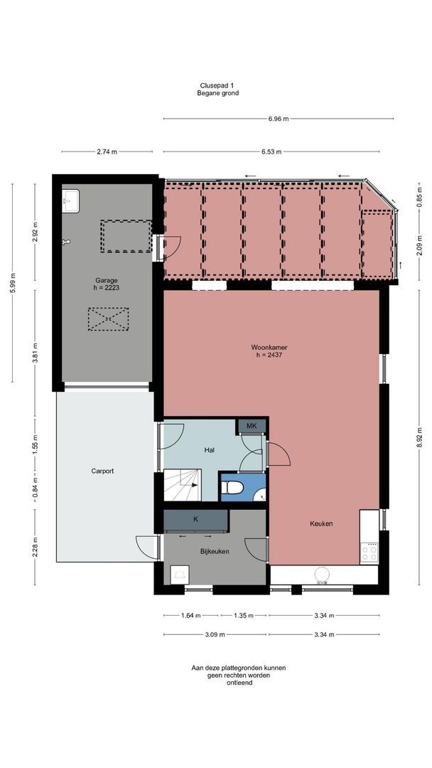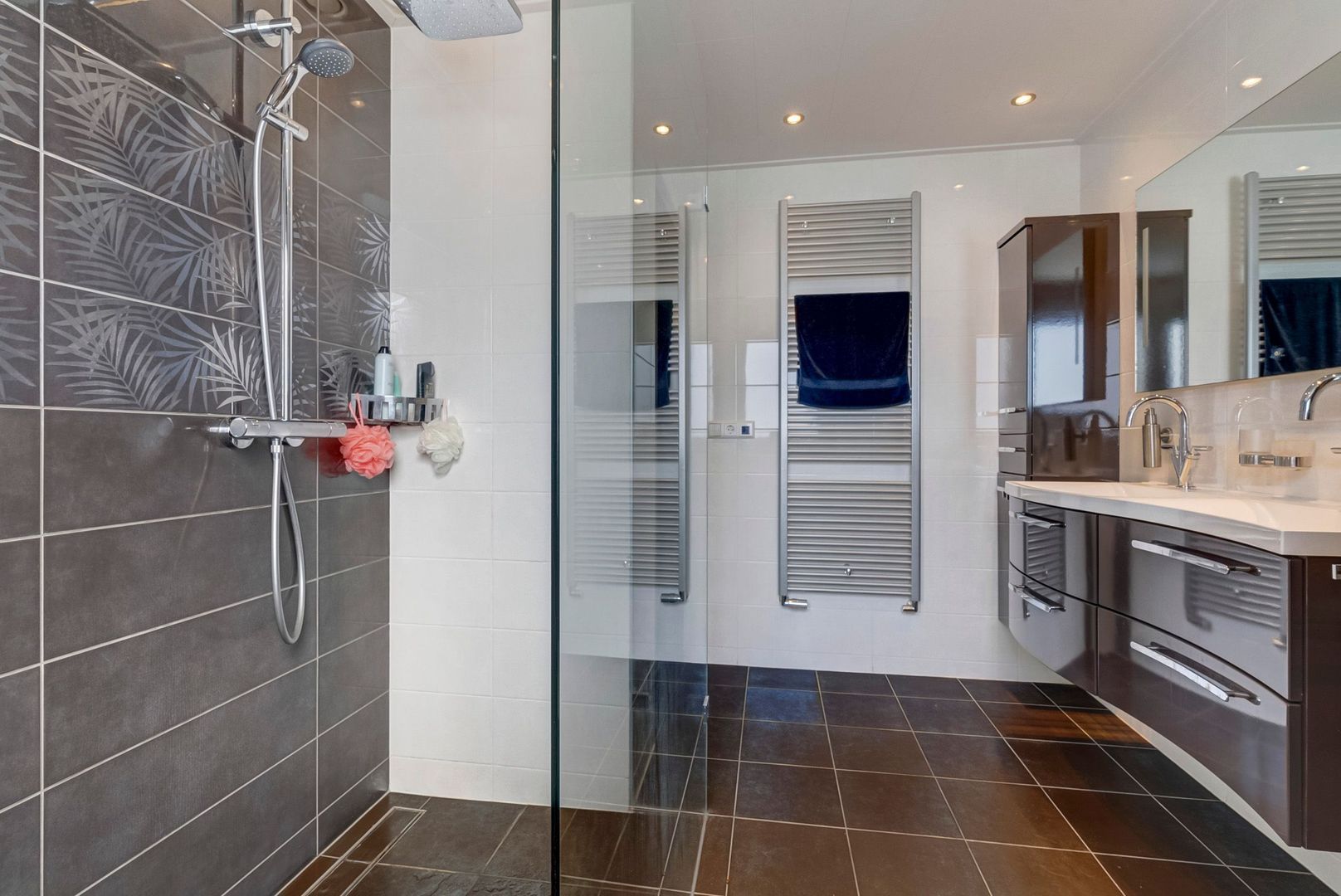 Op de begane grond is er naast nog een aangebouwde garage met een dubbelwastafelmeubel, toilet en inloopdouche. Voor de garage een carport van ca. 15 m2.