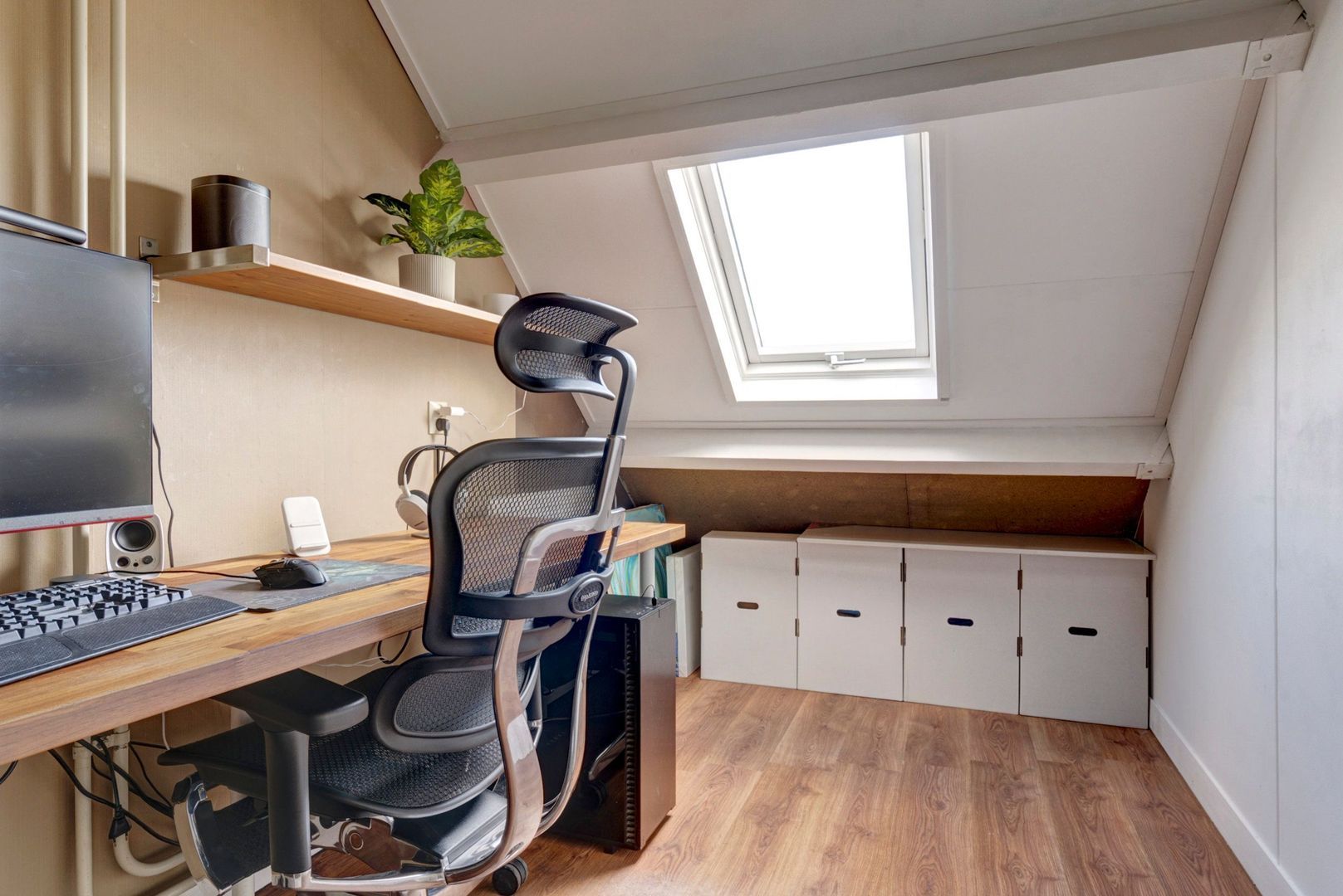 Voorzolder met opstelling van de Cv-ketel.