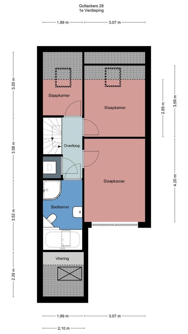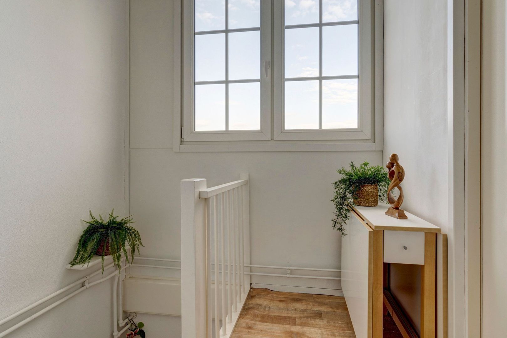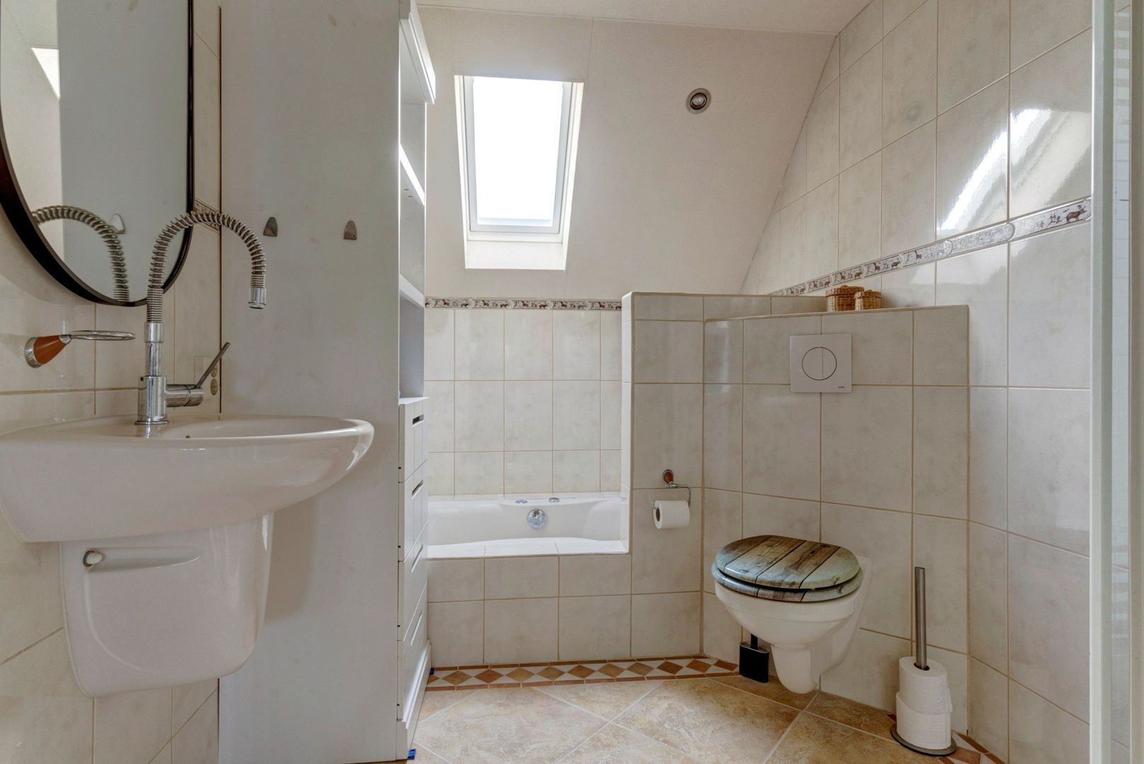 Het badkamerraam is uniek in de straat. De andere huizen hebben dat niet. Hierdoor veel lichtinval in de badkamer.