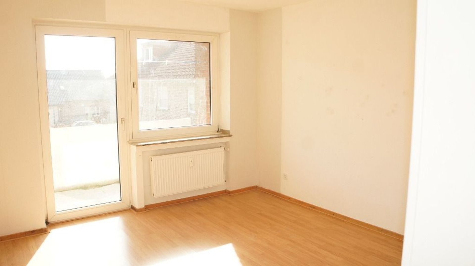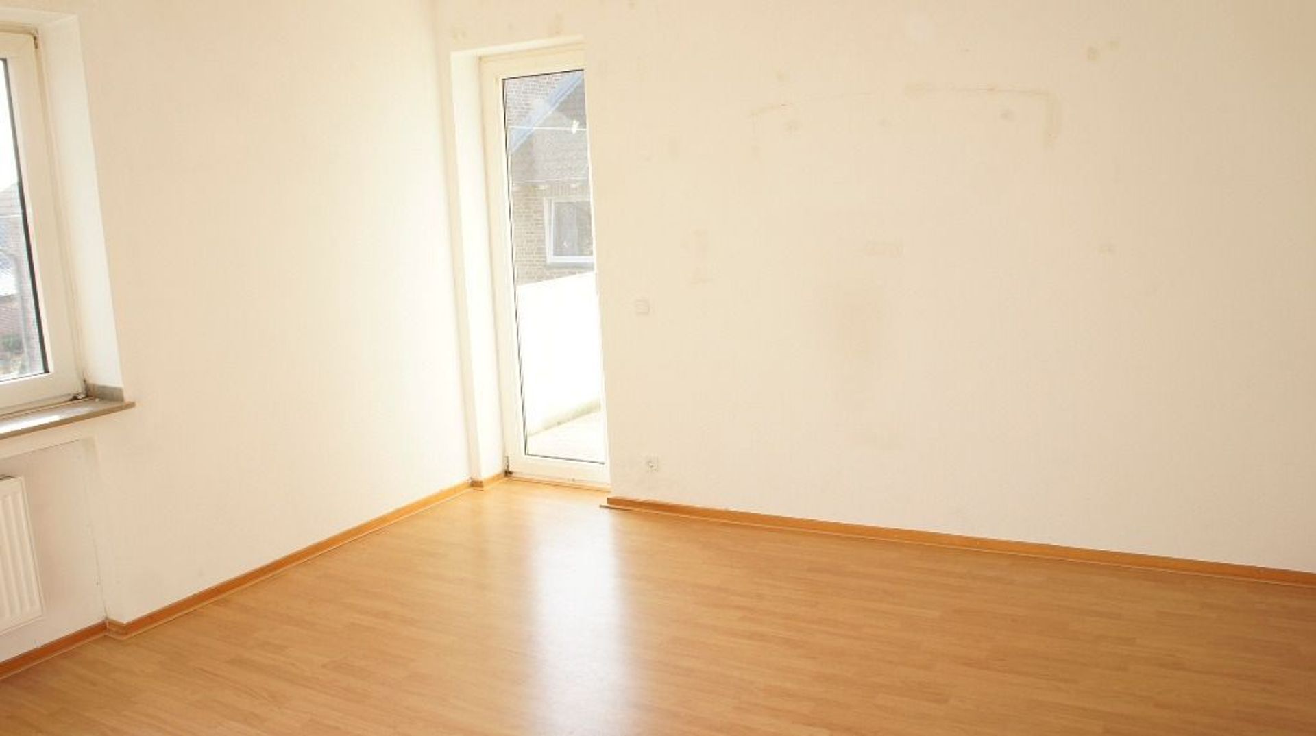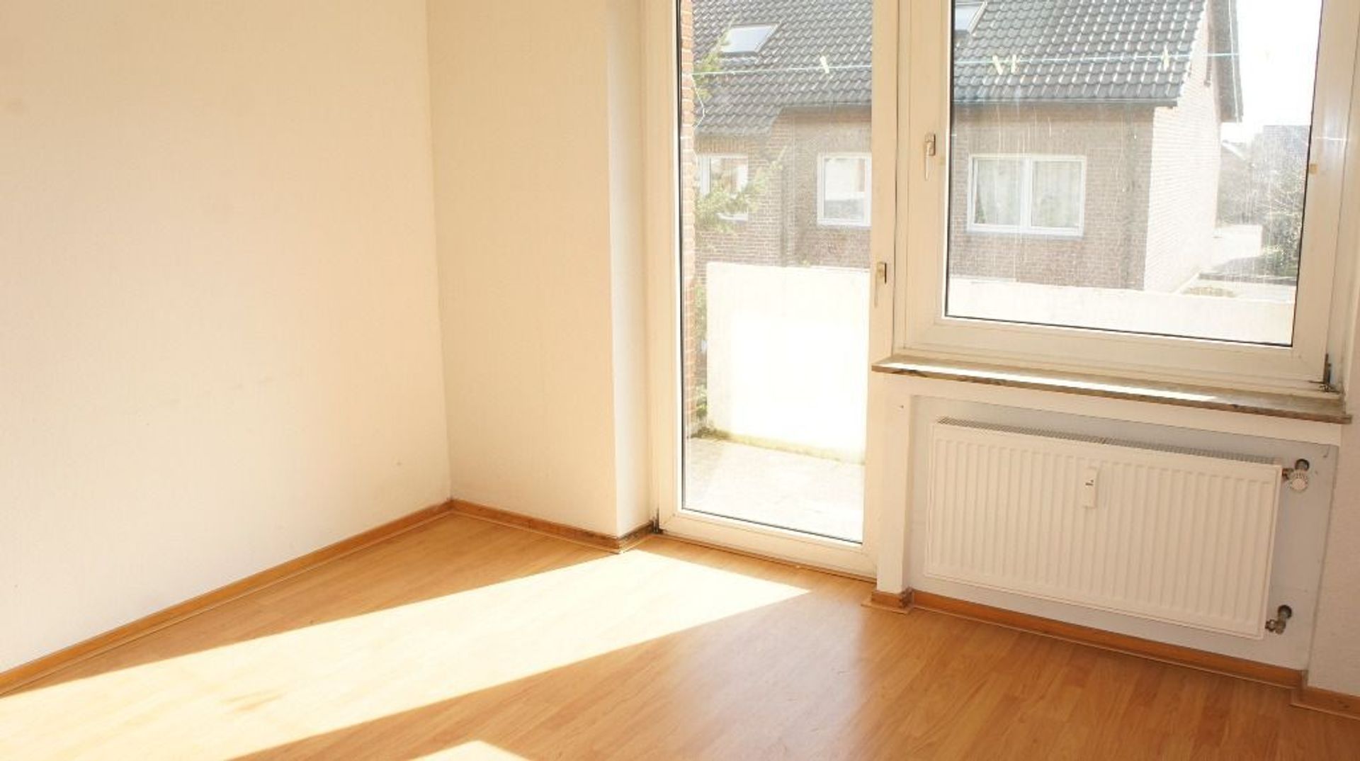 De woonkamer is voorzien van een balkon en ruime vensters.