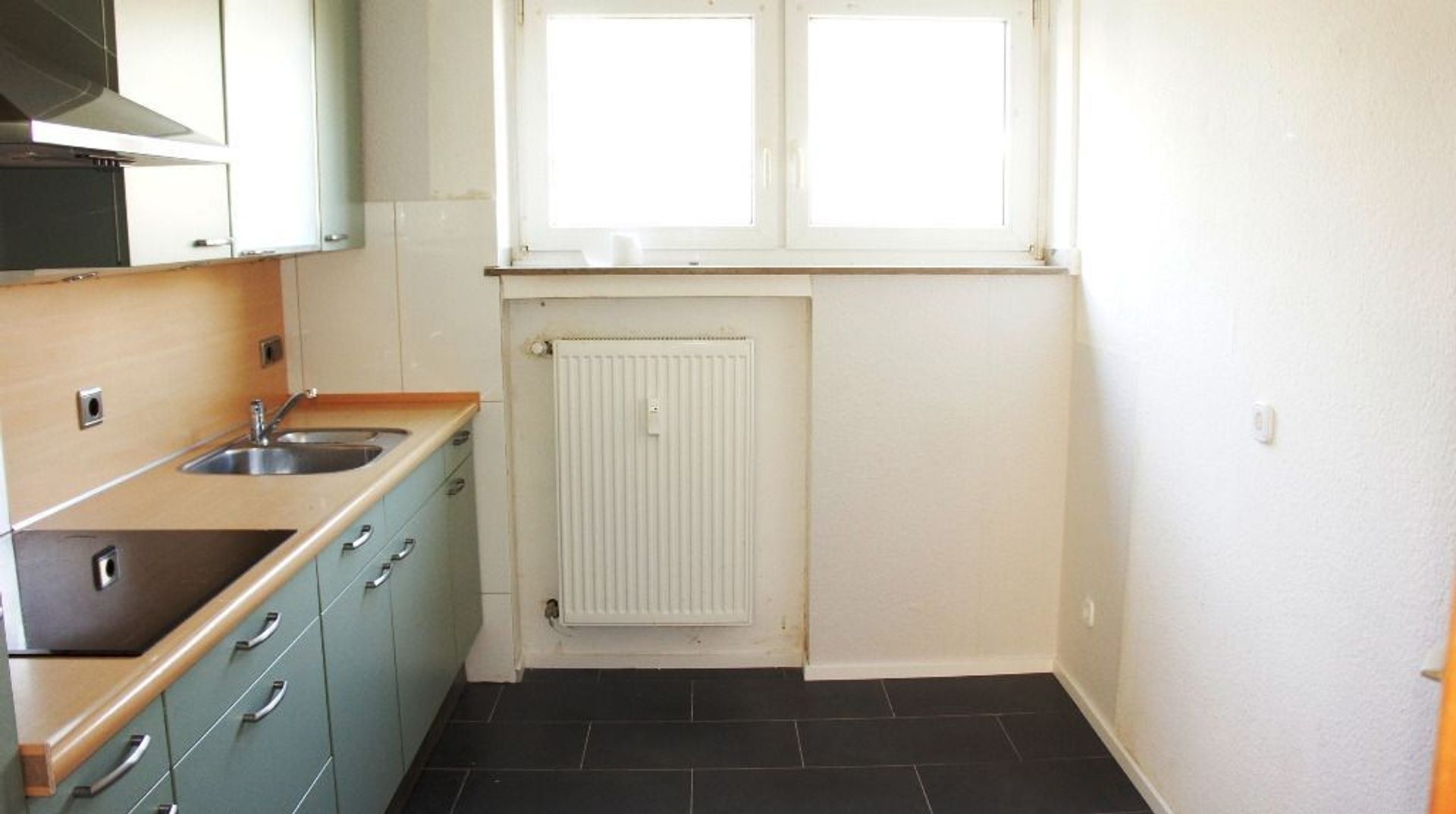 De vernieuwde keuken is v.v. een spoelbak en inbouwapparatuur.